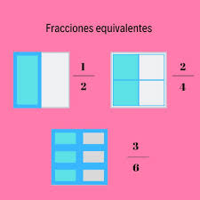 fracciones equivalentes; Decimos que una fracción es equivalente a otra cuando multiplicamos o dividimos el denominador y numerador de una de ella por un número natural y el resultado es la otra fracción.
